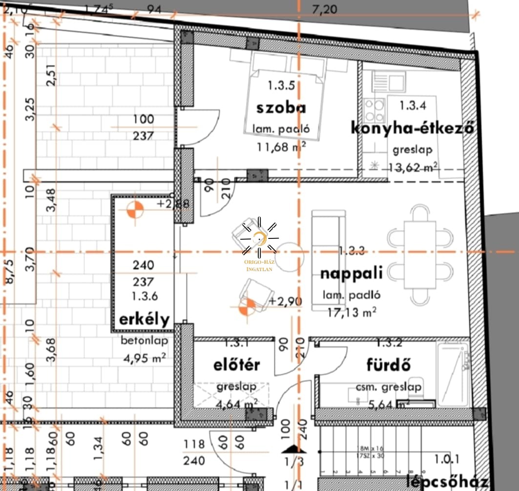 - I. emelet 1 hálószoba+nappali 52,71m2 + 5 m2 terasz m2 79.999.500 Ft-